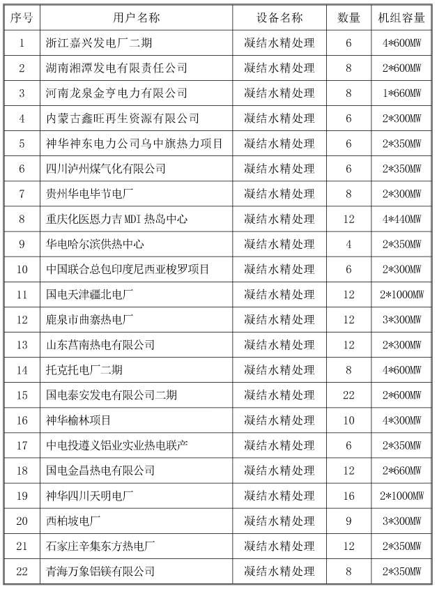凝結(jié)水精處理業(yè)績(jī)